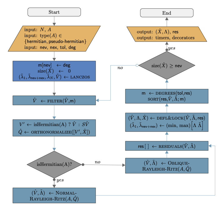 Vectors input: Since it is based on subspace iteration, ChASE can receive as input a matrix of vector \(\hat{V}\) equal to the number of desired eigenvalues. ChASE can experience substantial speed-ups when \(\hat{V}\) contains some information about the sought after eigenvectors.